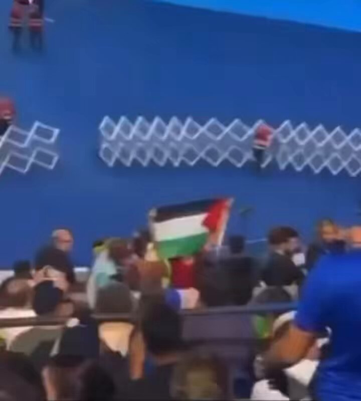🇲🇱🇮🇱 FLASH | Un aficionado israelí arrancó una bandera palestina que ondeaba en las gradas durante el partido Mali-Israel. #JuegosOlimpicos.